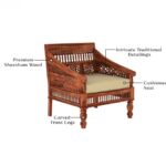 The Alanis 1 Seater Wooden Sofa combines elegance and comfort in a compact design. Crafted from durable wood, it features a sleek finish and plush cushioning, making it perfect for small living spaces. Its minimalist style blends seamlessly with modern or traditional interiors, enhancing your home’s aesthetic appeal.