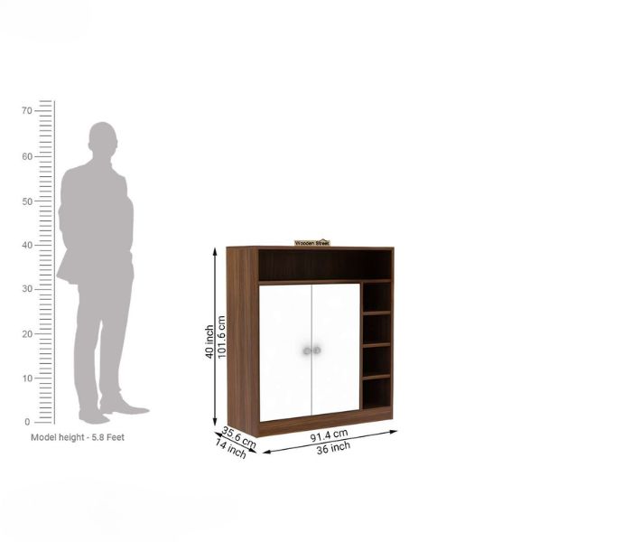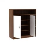 Dina 2 door modern shoe rack provides smooth, space-saving storage for your shoes. Prepared from durable wood, it features a contemporary design with two doors that neatly hide many shelves. Ideal for entrances or bedrooms, it combines style and function to keep your location streamlined and organized.