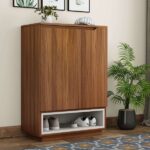 The Hector Engineered Wood Shoe Cabinet with Frosty White Drawer in an Exotic Teak Finish combines style and functionality. Perfect for modern homes, it offers ample storage space while enhancing your décor. The contrasting frosty white drawer adds elegance, making it a practical and stylish footwear storage solution.