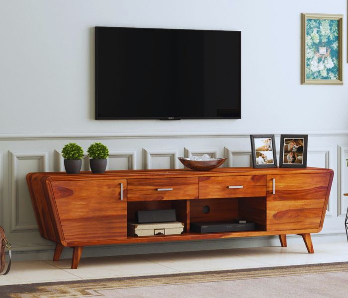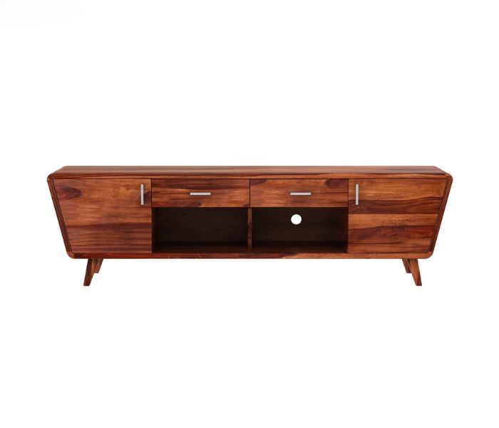 Melvina Sheesham Wood TV unit mixes functionality with rustic elegance. Premium prepared from rosewood wood, it provides durability and a rich, natural grain finish. Specialty of huge shelves and drawers, it is perfect for organizing media equipment adding a warm, stylish touch in your living room decor.