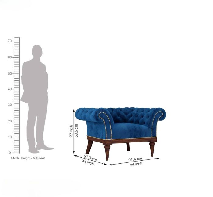 Swanson 1 Seater Sofa (Velvet, Indigo Blue)